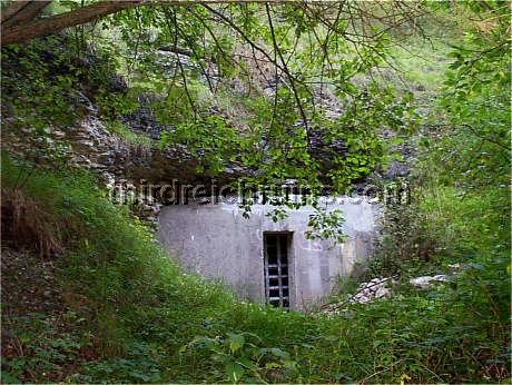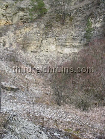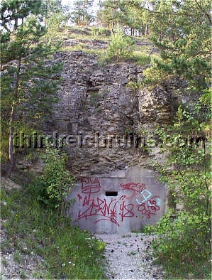 Geheimobjekt "Siegfried/Jasmin/Olga/Burg" in the Jonastal Secret Objects "Siegfried/Jasmin/Olga/Burg" in the Jonas Valley near Ohrdruf One of the many Third Reich construction projects that was started but never finished was a series of underground complexes in central Thüringen, southeast of the city of Gotha (near the concentration camp at Ohrdruf, the first such camp found by the Americans on German soil). This project had several code names, depending on what part was meant, and the names also changed over time - the following names were used for all or part of this complex - Siegfried, Jasmin; the designations Olga, Burg, and S/III were sometimes used for the entire project area (including the Jonastal and the surrounding area); "Olga" was also the code name for the "Amt 10" communications center bunker at Ohrdruf. The main works were dug in two sections into a hill forming the north side of the Jonas Valley, between Crawinkel and Arnstadt. This part of the project was reportedly intended as a last-ditch headquarters facility for Hitler and his staff, should they fall back from Berlin into the interior of Germany (some reports say Hitler actually spent the end of March 1945 in this or another nearby underground Führer Headquarters). Other theories say this or a nearby site were intended for production of the intercontinental "Amerika" rocket, and even testing and production of a Nazi atomic bomb. Most of the Jonastal complex never advanced much further than the tunnel digging stage, and the Soviets blasted most of the tunnel entrances after the war. The exact purpose of this facility remains in doubt, as does its code-names ("Siegfried" and "Olga" may actually have been names of other sites). (Google Maps link) Please note that this site became part of the adjacent Ohrdruf military training area ca. 2001, and is now posted off-limits to visitors. Bundeswehr authorities take a dim view of trespassing here. The photos shown on this page were taken before the site was posted as off-limits.