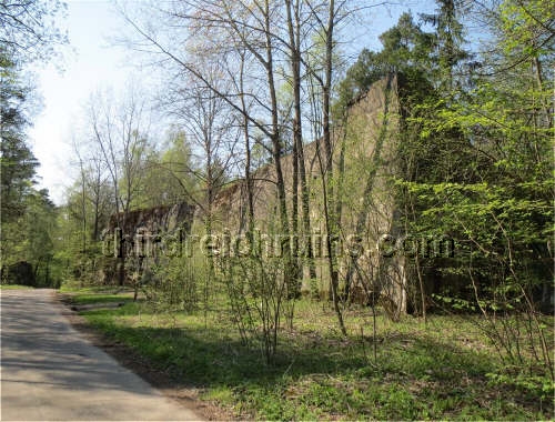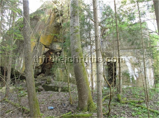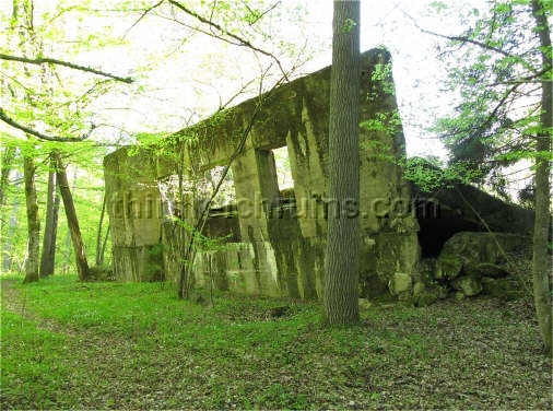 of the marked tour paths. This ruin exhibits the standard bunker exterior