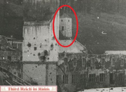 was damaged in the April 1945 bombing attack (changing the roof), and the road has been
